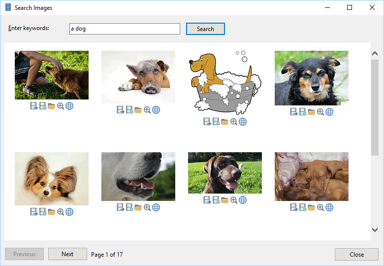 Web image search feature enables you to find hundreds of relevant images on the web that you can easily use in your animation projects. Just enter your keywords and pick an image that you need for your project. This feature is available in Professional version only.